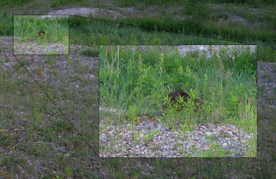 Als wir heute durch die Donau-Auen fuhren, drückte ich fr.gross die Kamera in die Hand, sie solle ein paar Fotos schießen, ist sie mangels Lenk- und Bremsaktivität doch etwas flexibler als ich. Sie freundete sich gerade mit der Kamera an, da erspähte ich am linken Wegesrand einen riesen Brocken von Biber und rief ganz aufgeregt "Der Biber!". Ich freute mich schon wie Schnitzel, dass ich die Kamera wenige Augenblicke zuvor fr.gross übergeben hatte. Meinen Zuruf sofort richtig einordnend und geistesgegenwärtig schoss sie ein Bild; als der Biber rechts im hohen Gras verschwand.