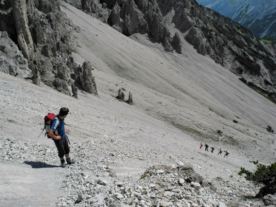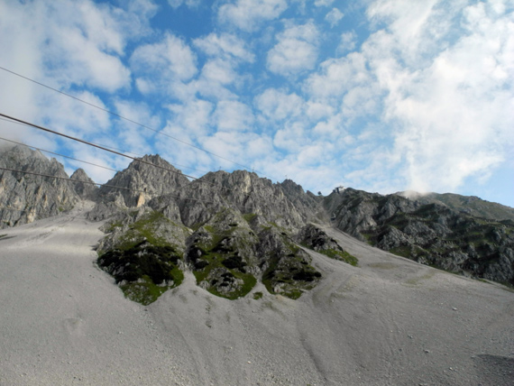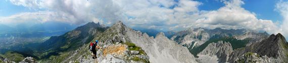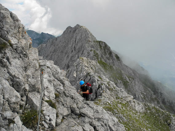 Immer auf dem Grat entlang, im Bild von rechts nach links. Es handelt sich um den Innsbrucker Klettersteig, gelaufen vom Hafelekar bis zum langen Sattel und dann zurück zur Seegrube.